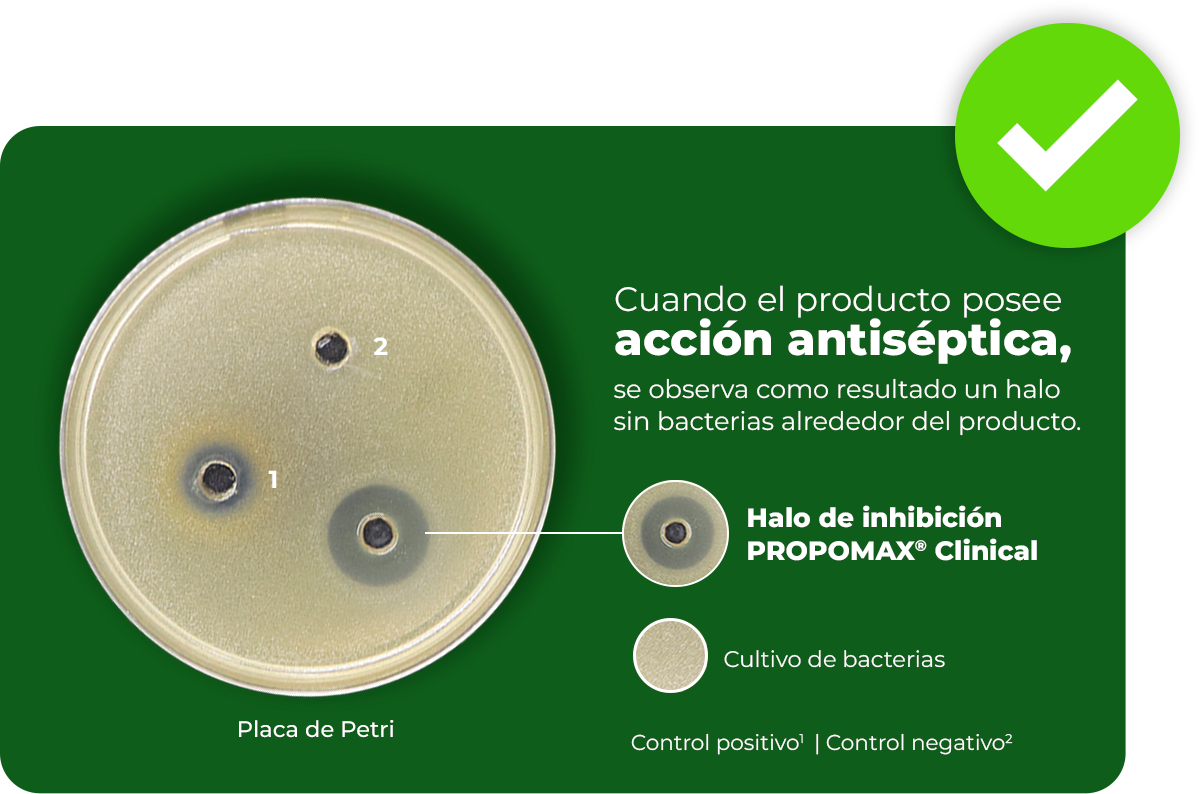 El poder antiséptico de los sprays PROPOMAX® Clinical está garantizado por rigurosos análisis de eficacia en laboratorio frente a las principales bacterias responsables de problemas bucales, como Staphylococcus aureus y Streptococcus mutans.