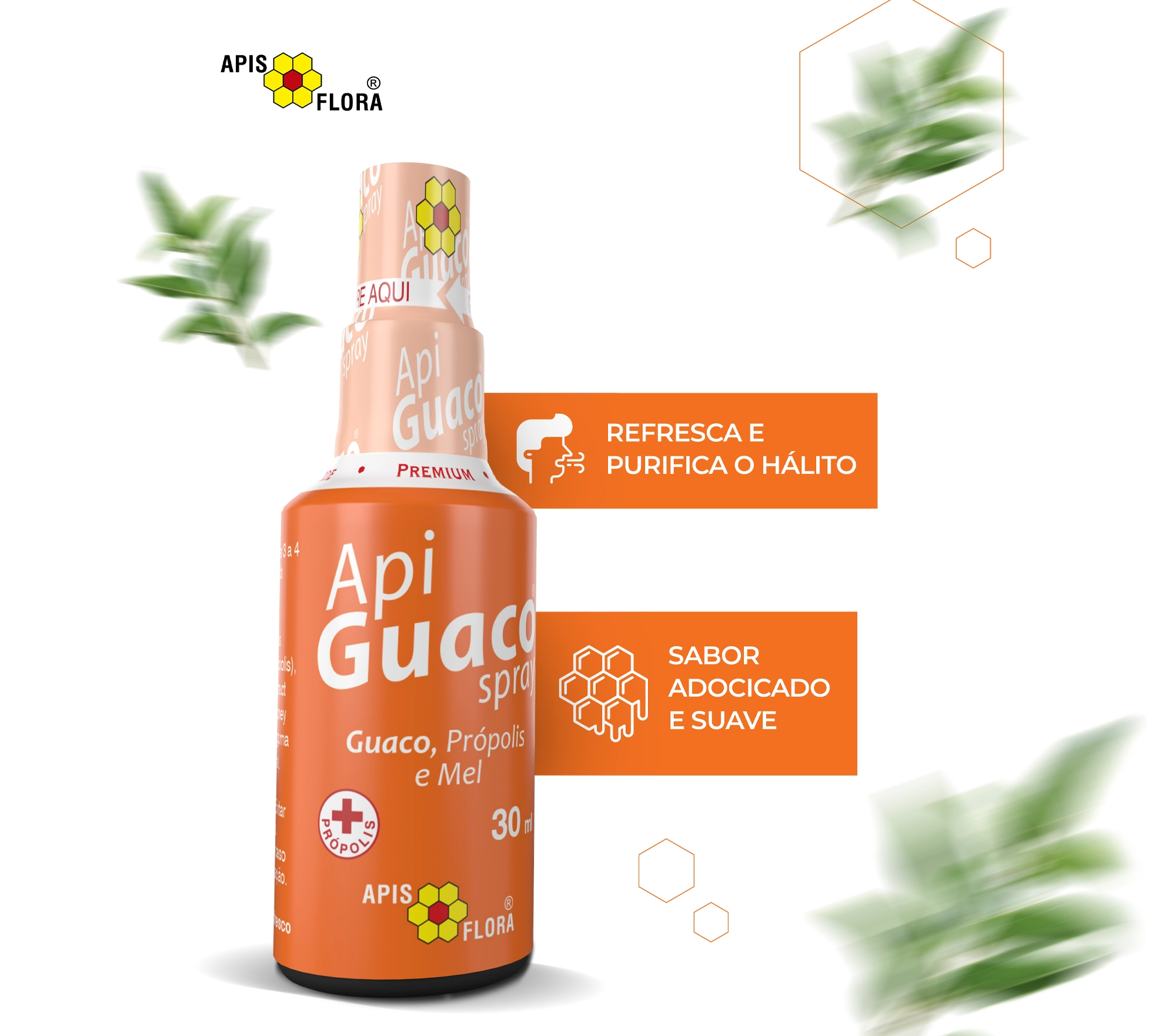 Propolis extract, Mikania glomerata extract, xanthan gum, honey and aqua.