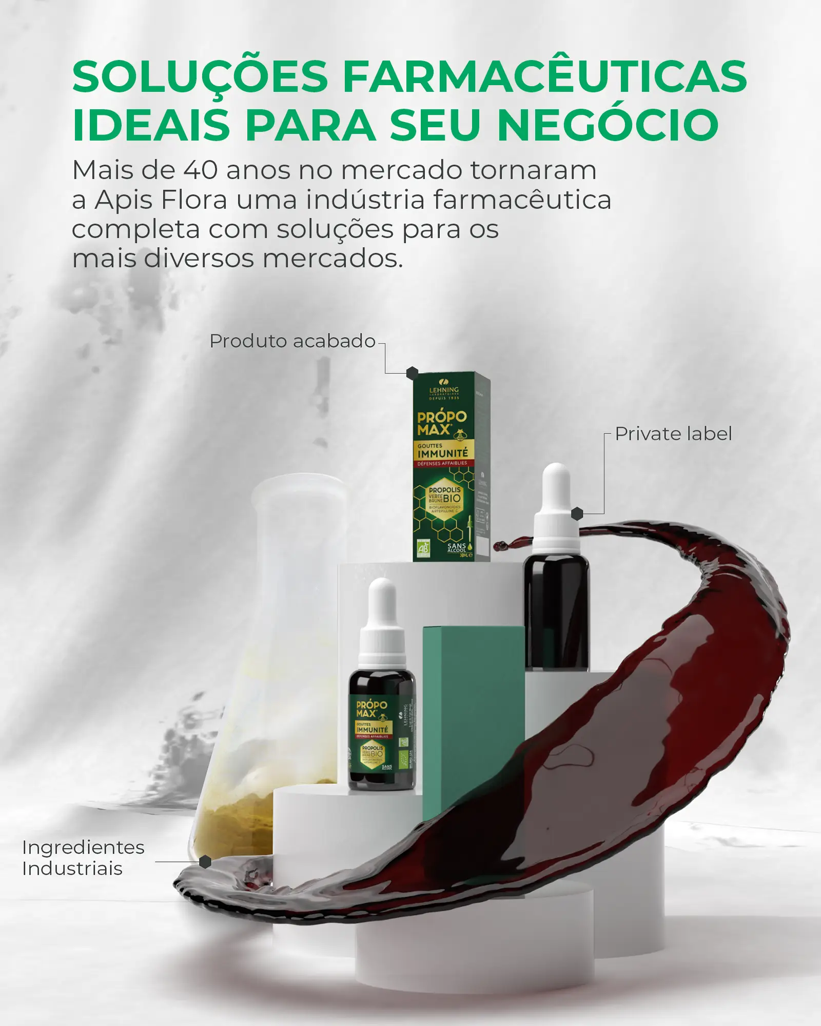 A Apis Flora desenvolve produtos e fornece ingredientes para diversos segmentos, como a indústria alimentícia, nutrição esportiva, bebidas funcionais, produtos cosméticos, dentre outros.