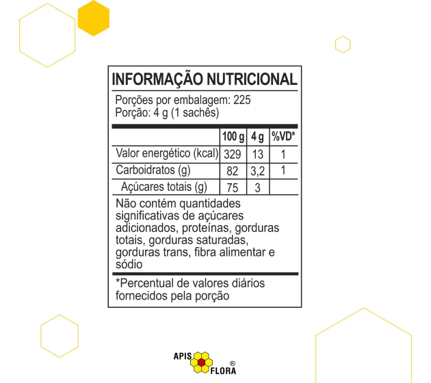 O Mel Puro Apis Flora é produzido com mel da mais alta qualidade, selecionado das melhores floradas do país, livre de quaisquer aditivos. Além disso, assim como outros produtos, ele também passa por processo de padronização, avaliação e aprovação lote a lote, garantindo ao consumidor acesso a um produto de elevado padrão.